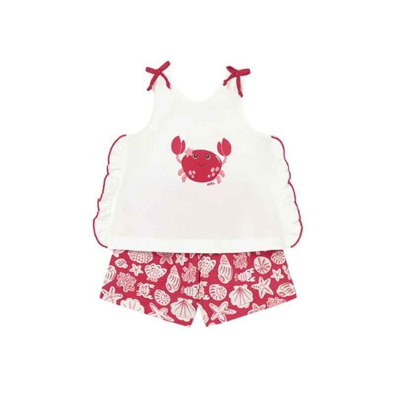 Mayoral Kız Bebek Askılı T-Shirt Şort Takım SS2601210, yaz aylarında minik prensesler için ferah, rahat ve şık bir kombin sunar. İspanyol çocuk moda markası Mayoral’in zarif ve kaliteli tasarım anlayışıyla hazırlanan bu takım, günlük kullanımda konforlu bir tercih oluşturur.