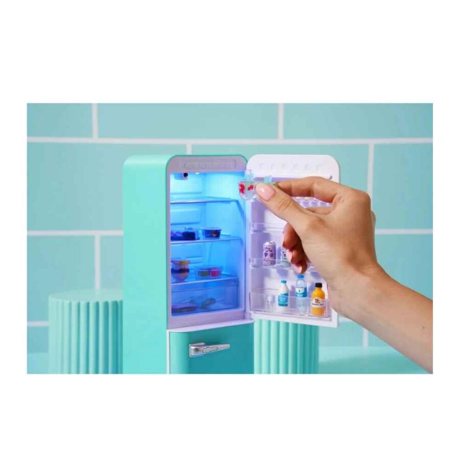 Dolap kapağında yer alan gerçek magnet, koleksiyon hissini güçlendirirken setin dekoratif yönünü de öne çıkarır. Kutudan çıkan iki özel mini yiyecek sayesinde buzdolabı ilk andan itibaren doldurulabilir.