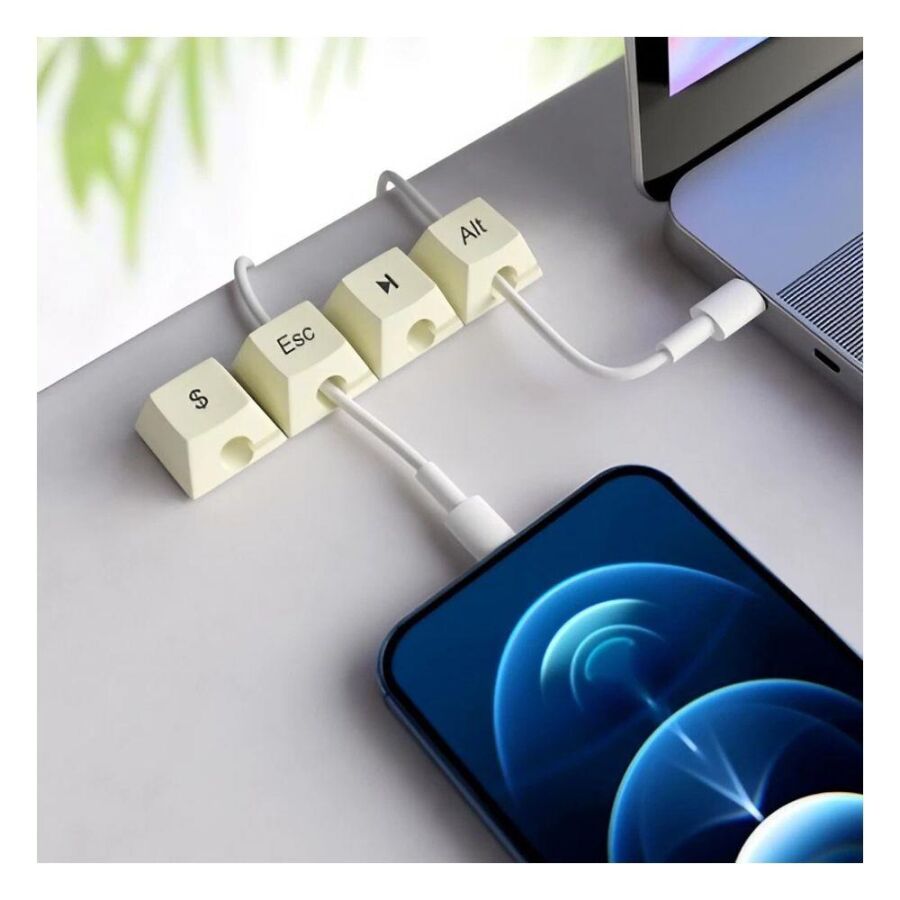 5 adet klavye tuşu şeklindeki düzenleyici, kablo karmaşasına etkili bir çözüm sunar.