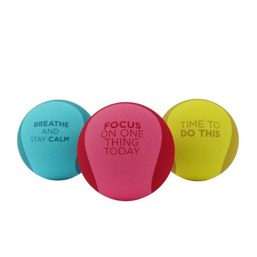 Topların üzerinde ingilizce olarak sakinleştirici sözler yazmaktadır.