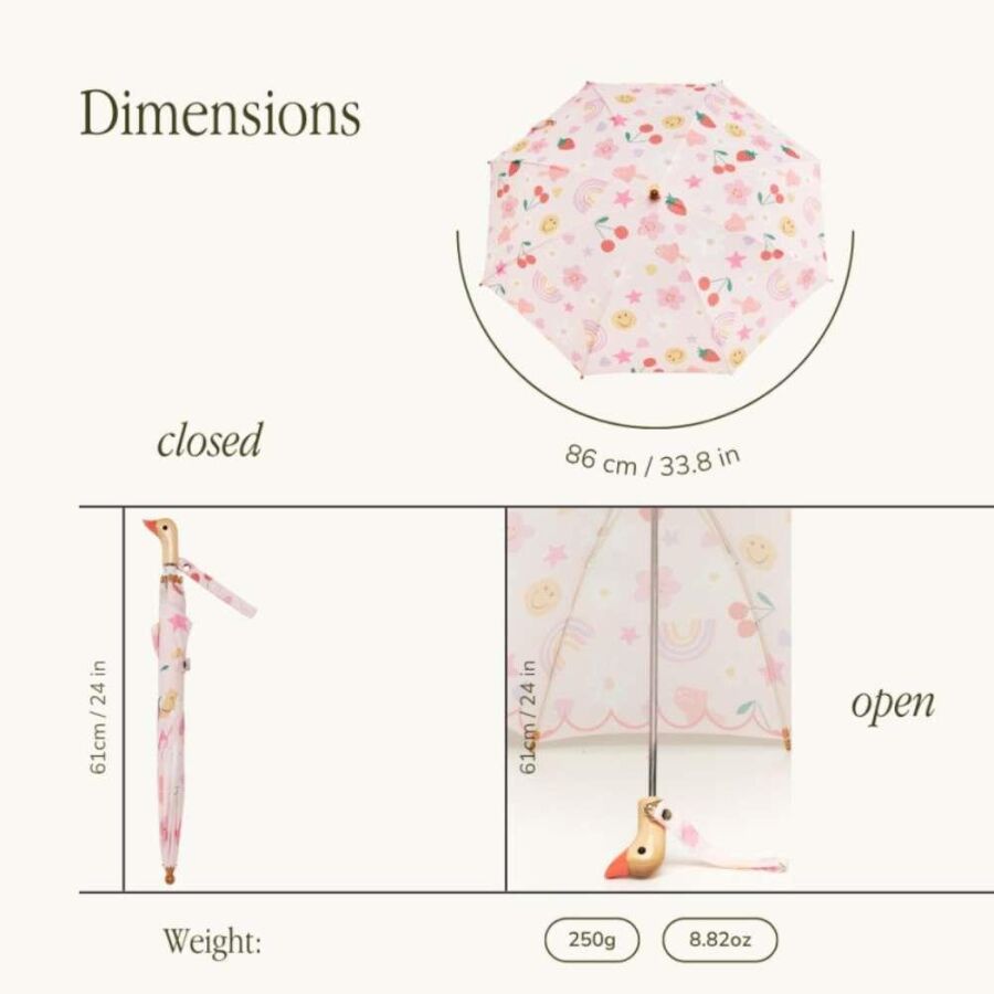 The Duckling, kompakt boyutuyla çocukların kendi şemsiyelerini rahatça taşımasına imkân tanır; bu da hem özgüven kazanmalarına hem de sorumluluk duygularının gelişmesine yardımcı olur.