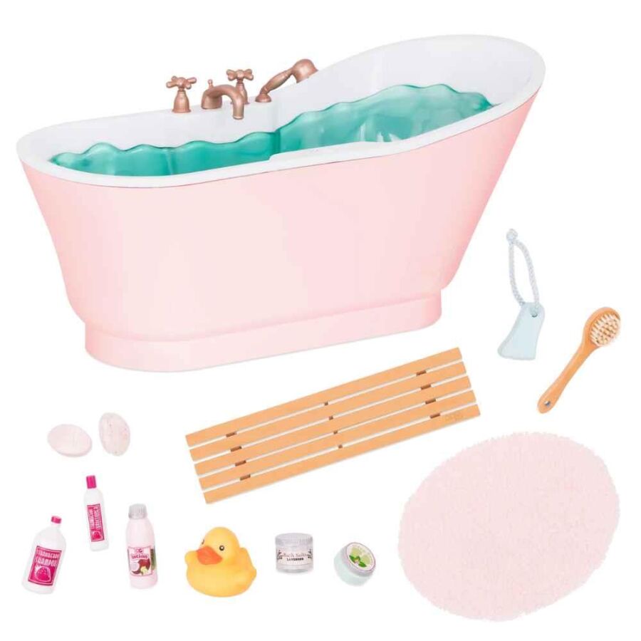 Banyo zamanı şimdi oyun saatine dönüşüyor! Our Generation Bath and Bubbles Küvet Seti, 46 cm (18 inç) bebeklerle uyumlu tasarımıyla çocuklara eğlenceli ve gerçekçi bir banyo deneyimi sunar.