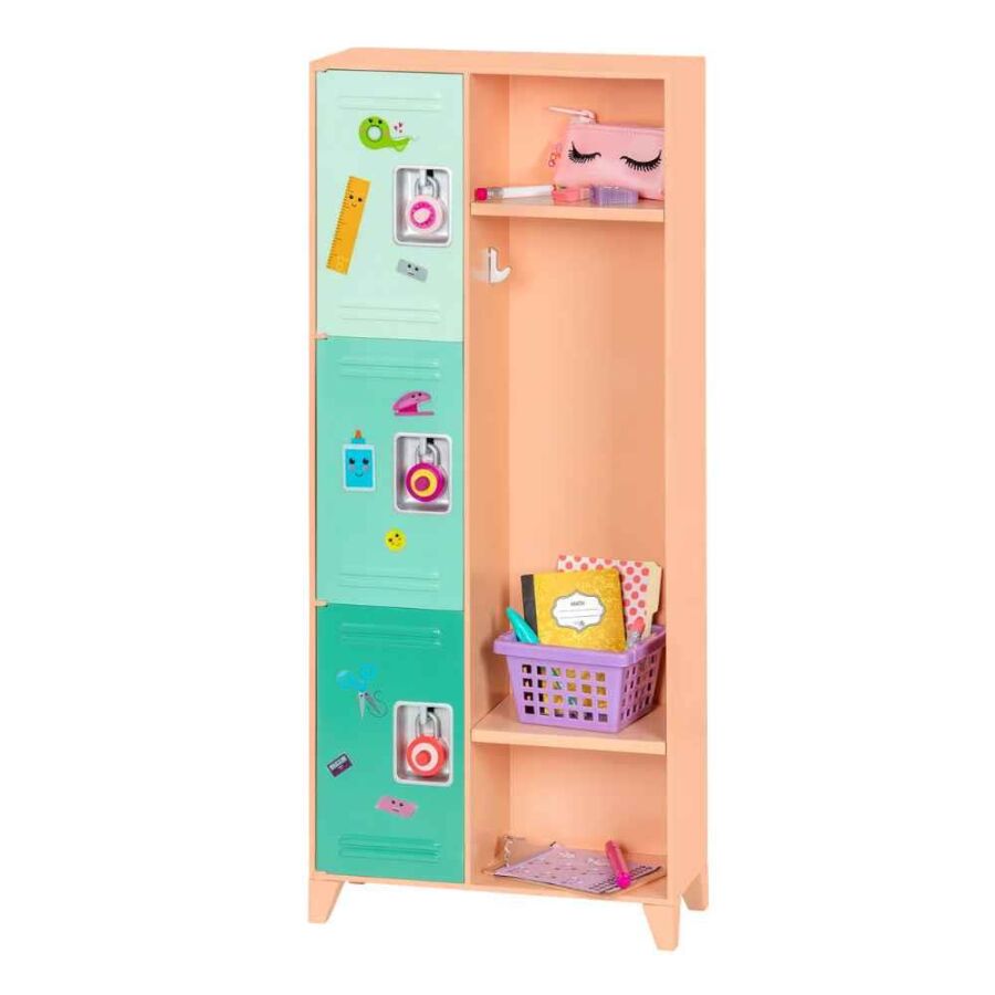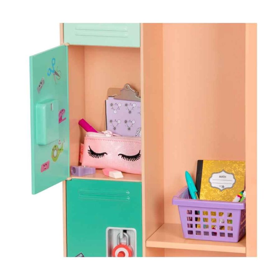 Okul günü oyunları şimdi çok daha düzenli ve eğlenceli! Our Generation Classroom Cool Okul Dolabı Seti, 46 cm (18 inç) bebeklerle uyumlu tasarımıyla çocukların okul temalı hikâyelerini zenginleştirir.
