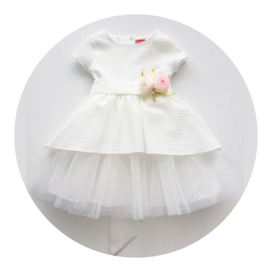Ön kemeri ekru ve pembe çiçek süsü ile