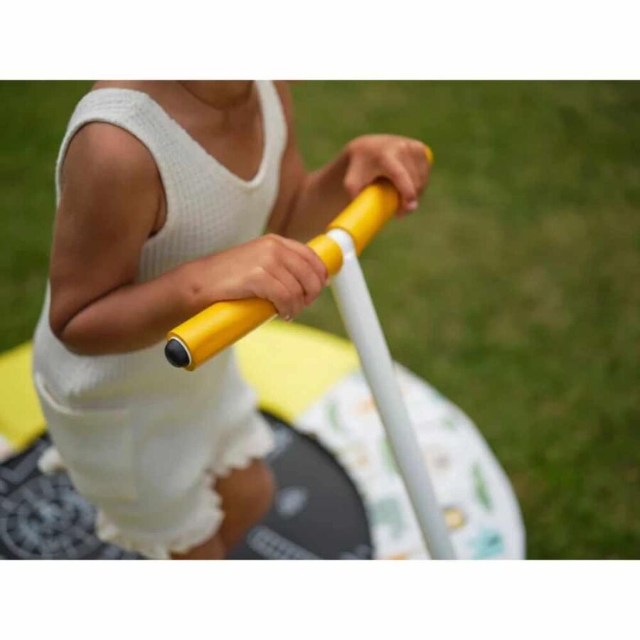 Yumuşak tutma sapı zıplama sırasında dengeyi desteklerken, kaymaz kauçuk ayaklar trambolinin zemine sağlam şekilde tutunmasını sağlar. Baskılı ve iki renkli güvenlik matı, miniklerin hayvan karakterlerle oyun kurmasına yardımcı olur.