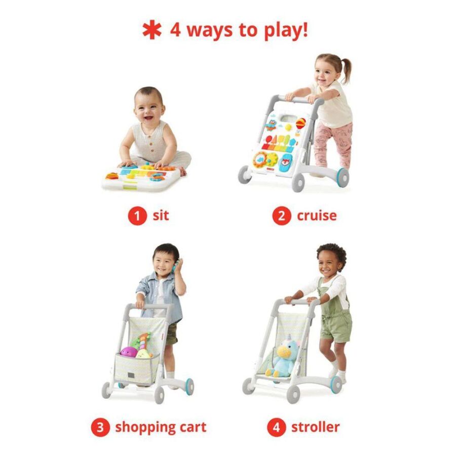 Bebeklerin gelişim yolculuğuna eşlik eden Skip Hop 4 Aşamalı Aktivite Yürüteç, 40’tan fazla eğlenceli özellik, şarkılar, sesler ve ışıklarla donatılmıştır. Oturarak oyun, gezerek oyun, alışveriş sepeti ve bebek arabası modlarıyla uzun yıllar kullanılabilecek çok yönlü bir oyuncaktır.