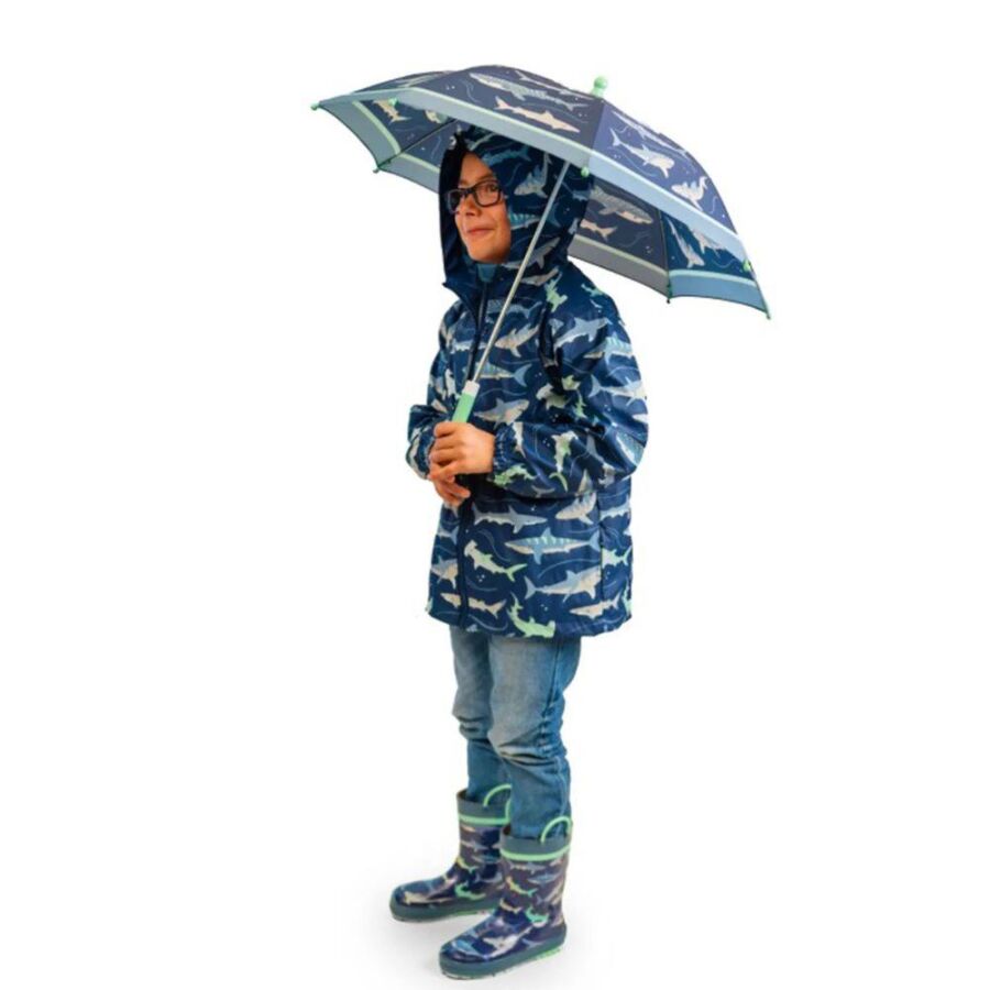 Yağmurun keyfini çıkarın! Stephen Joseph’in Köpek Balığı desenli çocuk şemsiyesi, canlı renkleri ve eğlenceli tasarımıyla küçüklerin yağmurlu günleri sabırsızlıkla beklemesini sağlar. Hafif yapısı sayesinde kolay taşınır, dayanıklı malzemesiyle uzun süreli kullanım sunar.