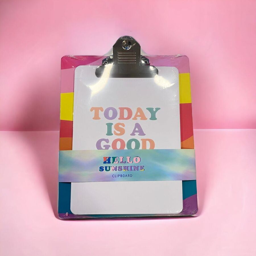 Üzerinde Today is a good day yazan kağıtlarla birlikte sunulmaktadır.
