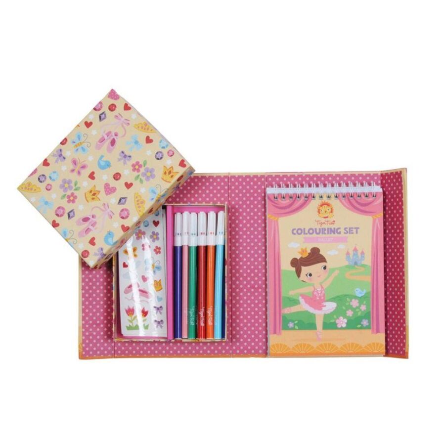 Hem boyama sayfaları hem boya kalemleri hem de çıkartmalar çıkmaktadır.