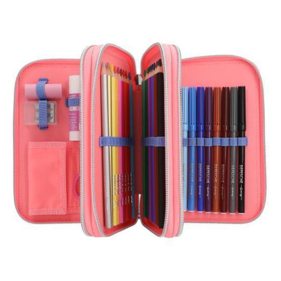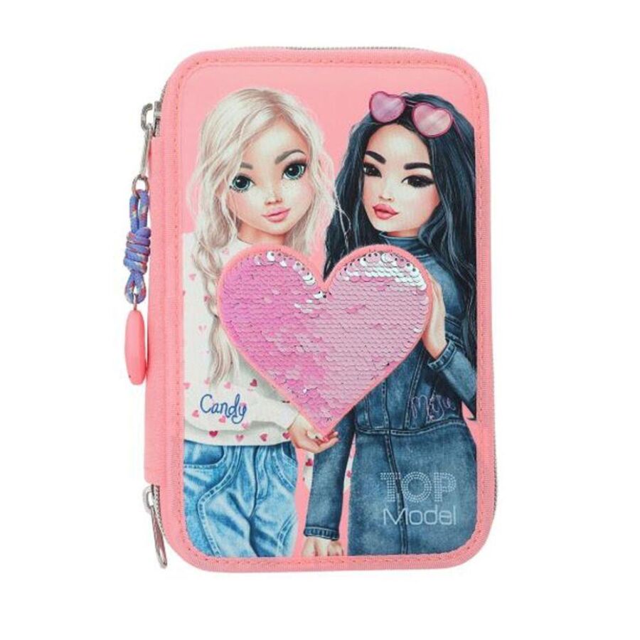 Top Model’in göz kamaştırıcı serisinden 3 katlı ve tamamen dolu bu kalemkutu, kalp detaylı pullu tasarımıyla dikkat çekiyor. Fermuarlı yapısıyla pratik kullanım sunan bu ürün, silgi, kalemtıraş, kurşun kalem, stick yapıştırıcı, makas, kuru boya ve keçeli kalemler gibi birçok kırtasiye malzemesini içerisinde barındırıyor. Şık tasarımı ve geniş içeriğiyle hem okul hem de günlük kullanım için ideal!