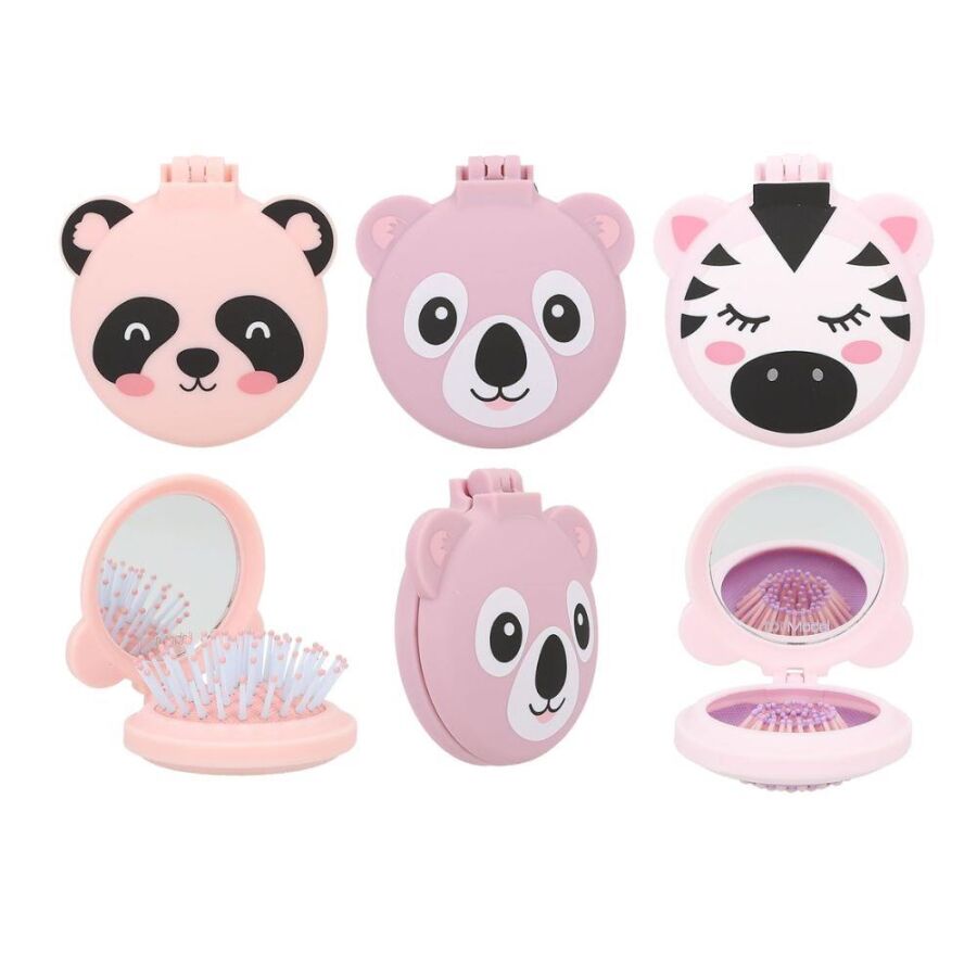 Üç farklı tasarıma sahip bu katlanabilir saç fırçaları, sevimliliğiyle göz kamaştırıyor. Mor renkli ayı yüzü ve kulakları, şeftali rengi panda yüzü ve kulakları ve pembe zebra yüzü ve kulaklarıyla çok şirin. Aynalı iç kısım ve kauçuk dış yüzeyiyle hem şık hem de dokusu oldukça yumuşak bir his sağlıyor.
