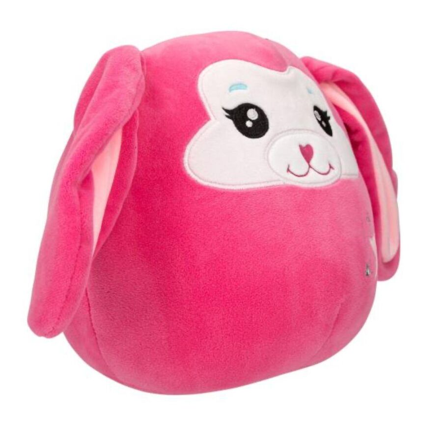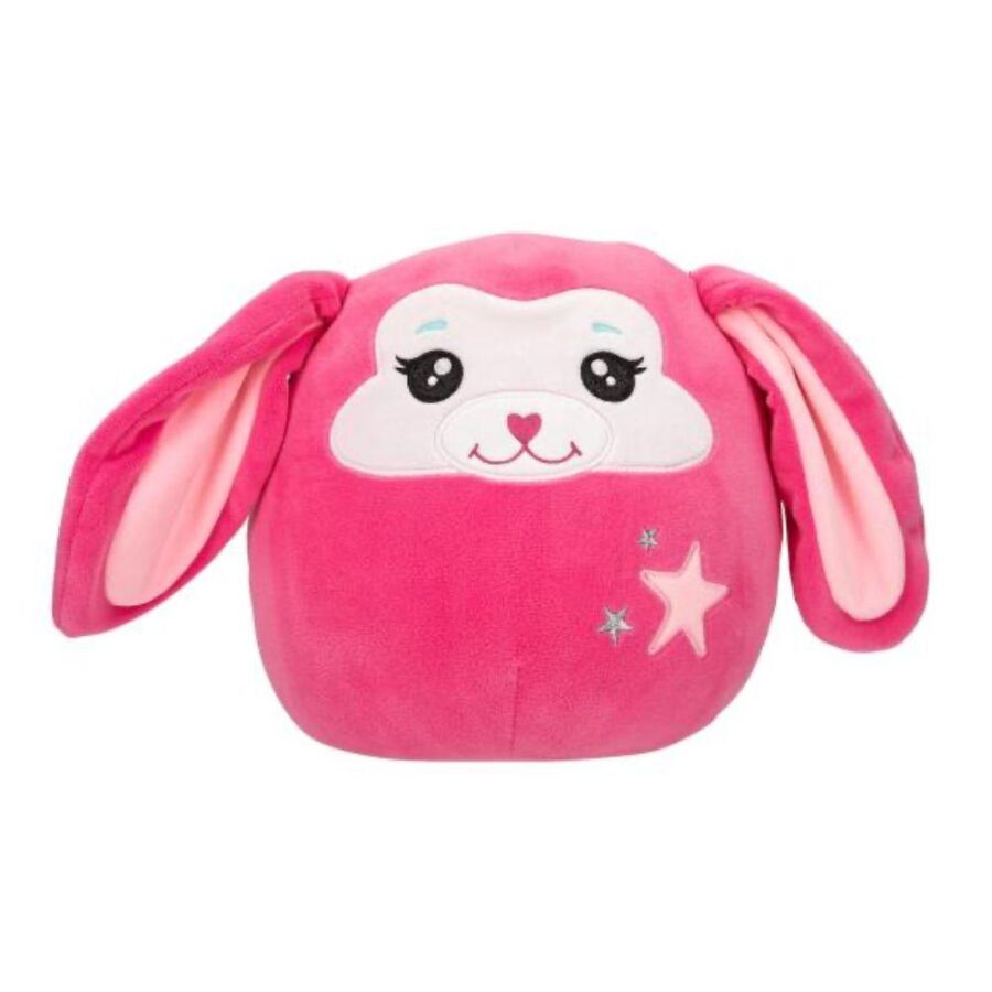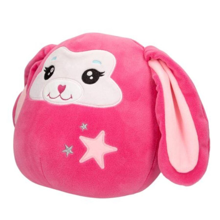 Yastık mı, peluş oyuncak mı? Her ikisi de! Yumuşacık ve pembe rengindeki bu yuvarlak peluş tavşan, kabarık dolgusuyla rahat bir kucaklama deneyimi sunuyor. Tatlı kulaklarıyla şirinliği arttığı gibi, geceleri karanlıkta parlayan yüzü, kulakları (iç kısmı) ve aplikeli yıldızlarıyla gece dostu hale geliyor! Boyut: yaklaşık 20 cm.