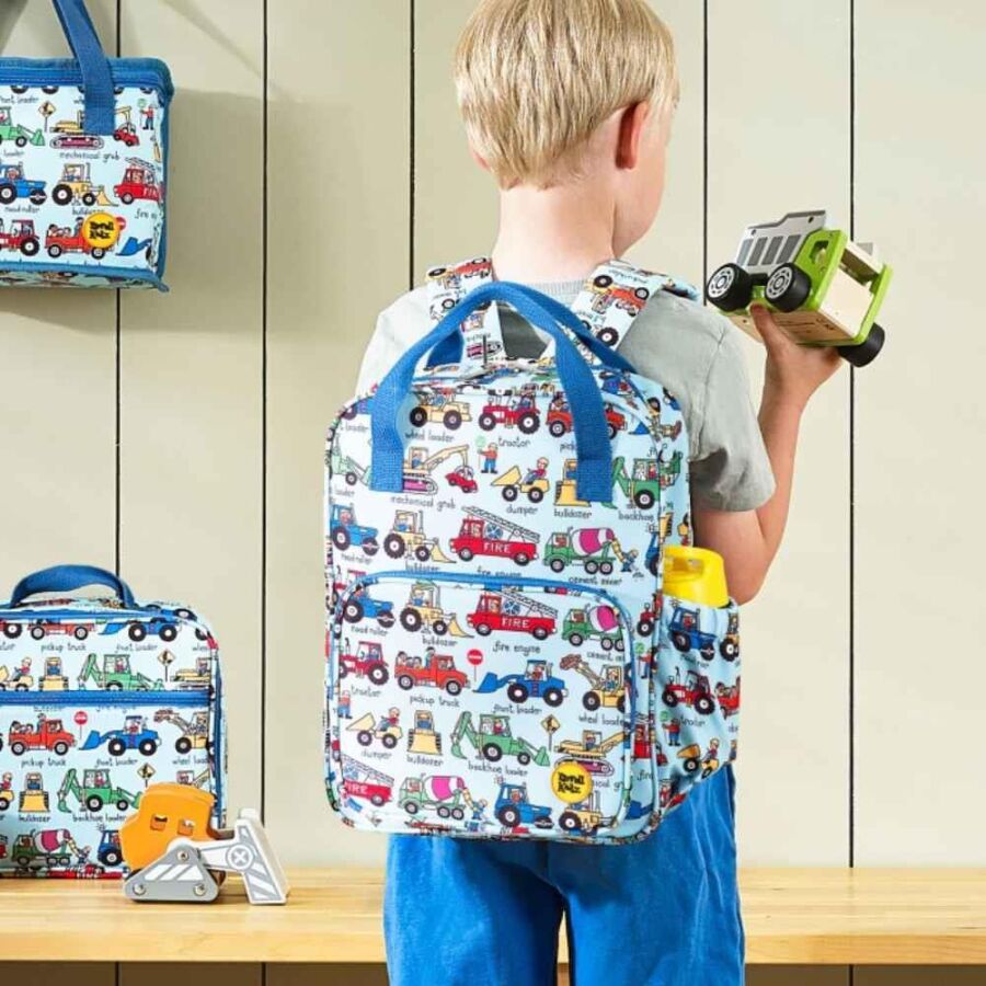 Tyrrell Katz Okul Sırt Çantası Trucks, eğlenceli kamyon temalı tasarımı ve pratik bölmeleriyle çocukların okul ve günlük kullanımına uygun şekilde tasarlanmıştır. Geri dönüştürülmüş polyester (rPet) malzemeden üretilen bu çanta, hem dayanıklı hem de çevre dostu bir seçenek sunar.