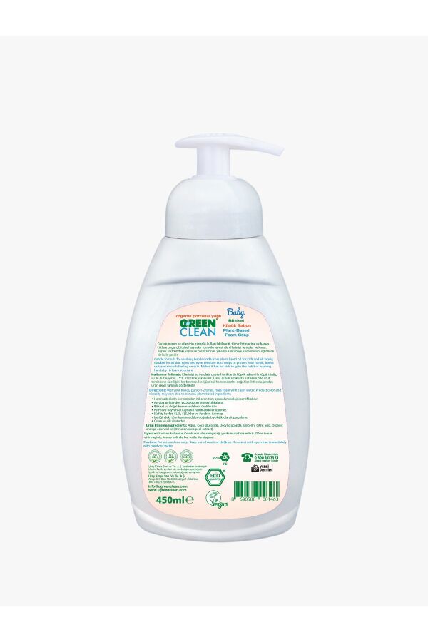U Green Clean Baby Organik Portakal Yağlı Köpük Sabun, tüm cilt tiplerinde güvenle kullanılır. Bebek ve hassas ciltlere de uygundur. Ellerinizi korur. Organik portakal kokusu sayesinde hoş bir koku bırakır. GDO, Paraben, Klor, SLES, SLS, Sentetik Parfüm, Fosfat ve Petrokimyasal türevler gibi zararlı kimyasallar kesinlikle içermez. Doğaya duyarlı sürdürülebilir üretim sistemleri ile imal edilmiştir. Dermatolojik olarak test edilmiş ve onaylanmıştır. Hammaddelerin üretiminden itibaren tüm aşamalar ekolojik sertifikalıdır. ; Bitkisel ve doğal hammaddelerle üretilmiştir. ; Boya, petrol ve hayvansal kaynaklı hammaddeler içermez. ; Zararlı kalıntı bırakmaz. ; İçeriğindeki tüm hammaddeler doğada biyolojik olarak parçalanır. ; Çevre ve cilt dostudur. ;