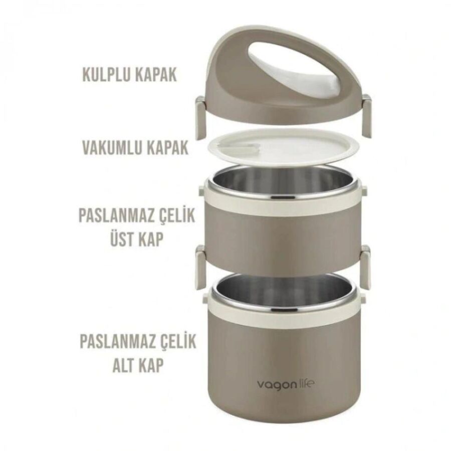 Vagon Life Çelik Yemek Termosu 2 Katlı Sefertası BL40130, günlük yemek taşıma ihtiyacınızı pratik ve güvenli bir şekilde karşılamak için tasarlanmıştır. 24 x 13.5 cm ölçülerindeki bu sefertası, toplamda 1800 ml kapasiteye sahiptir.