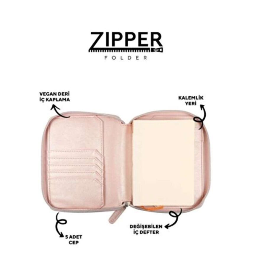 Gelince Haber VerVJ Zipper Organizer Defter Rose Gold Çizgili 120 gr 80 Yaprak 10 x 14 cm – 123-0296